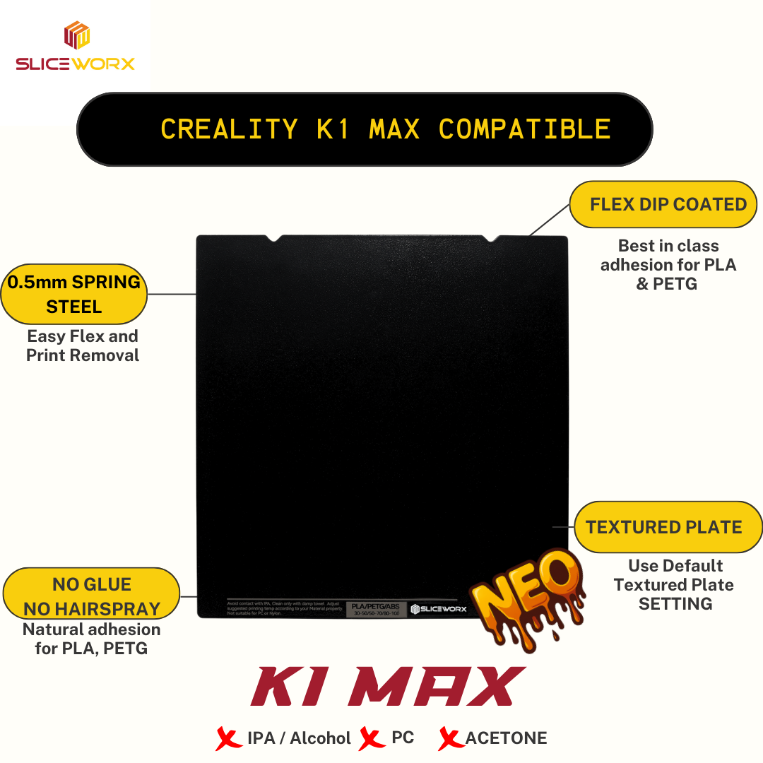 Sliceworx Creality K1 Max Flex Dipped Plate Textured Spring Steel Sheet 310x315mm for K1 MAX