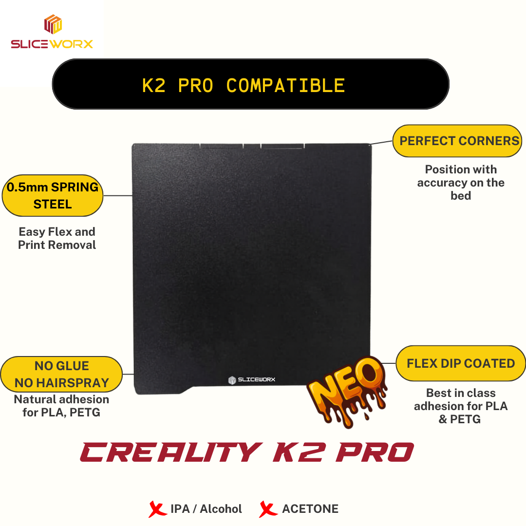 SLICEWORX Flex Dipped Plate Textured Spring Steel Sheet 310 x 325mm for Creality K2 Pro 3D PRINTER