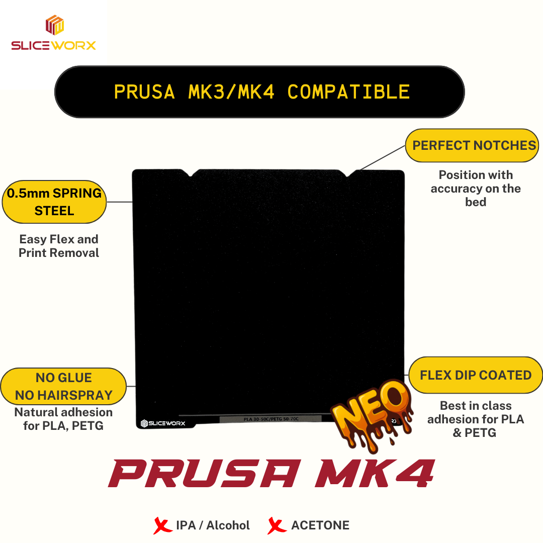 SLICEWORX Flex Dipped Plate Textured Spring Steel Sheet 254x235mm for Prusa MK3/MK4 Printers